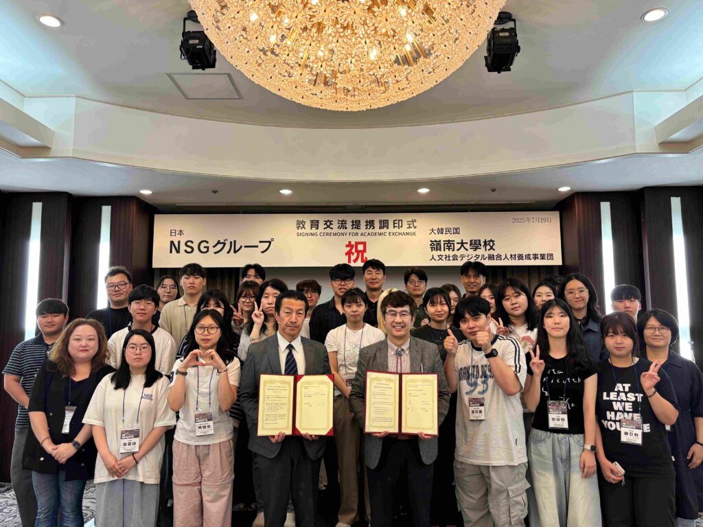 その後、NSGグループ国際推進室と嶺南大学 人文社会デジタル融合人材育成事業団との間でMOU(教育交流協定)調印式が行われ、今後の連携と発展を目指す力強い一歩となりました。